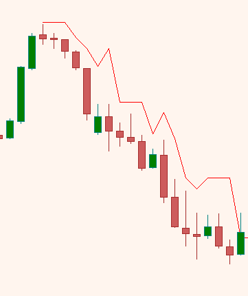 Der Indikator stellt den Stoppverlauf als rote Linie dar.  Sie können die Startkerze frei wählen und den  Stoppverlauf für eine beliebige Chartsequenz testen.